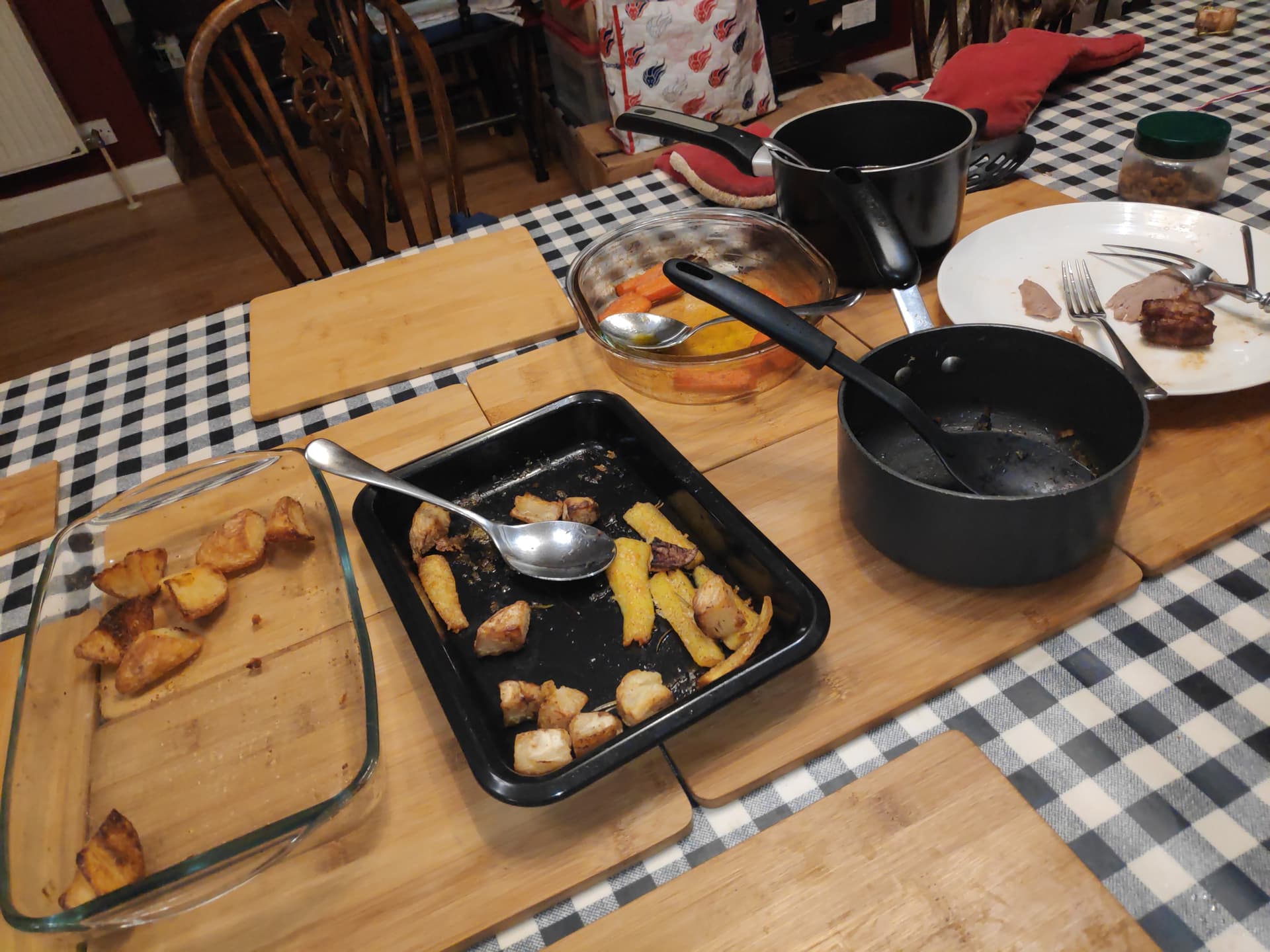 Approx 1,473 pans and dishes, coated in 17 gallons* of duck fat, washed up.